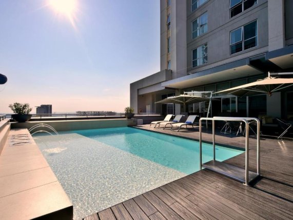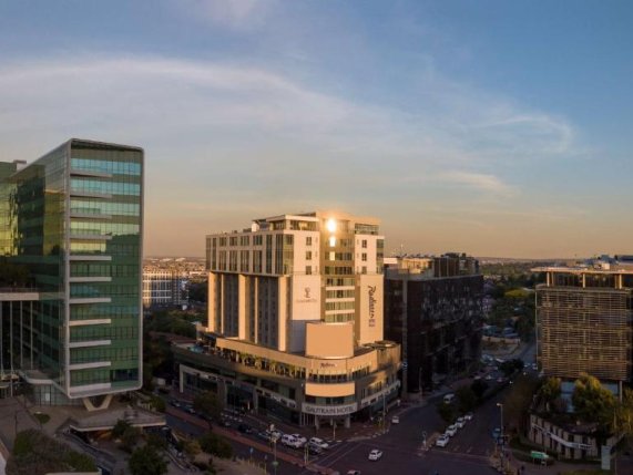The Radisson Blu Gautrain is a modern and sophisticated hotel located in the heart of Sandton's business district. Its impressive atrium sets the tone for a memorable experience, the stylish rooms come with top-notch amenities. The hotel boasts a restaurant and bar along with the largest fitness megaplex in Sandton spanning over 5500sqm coupled with an indoor running track. The hotel is a 5 minute walk, or short shuttle ride, from Nelson Mandela Square in Sandton, with its mall, shops and extensive eating options.